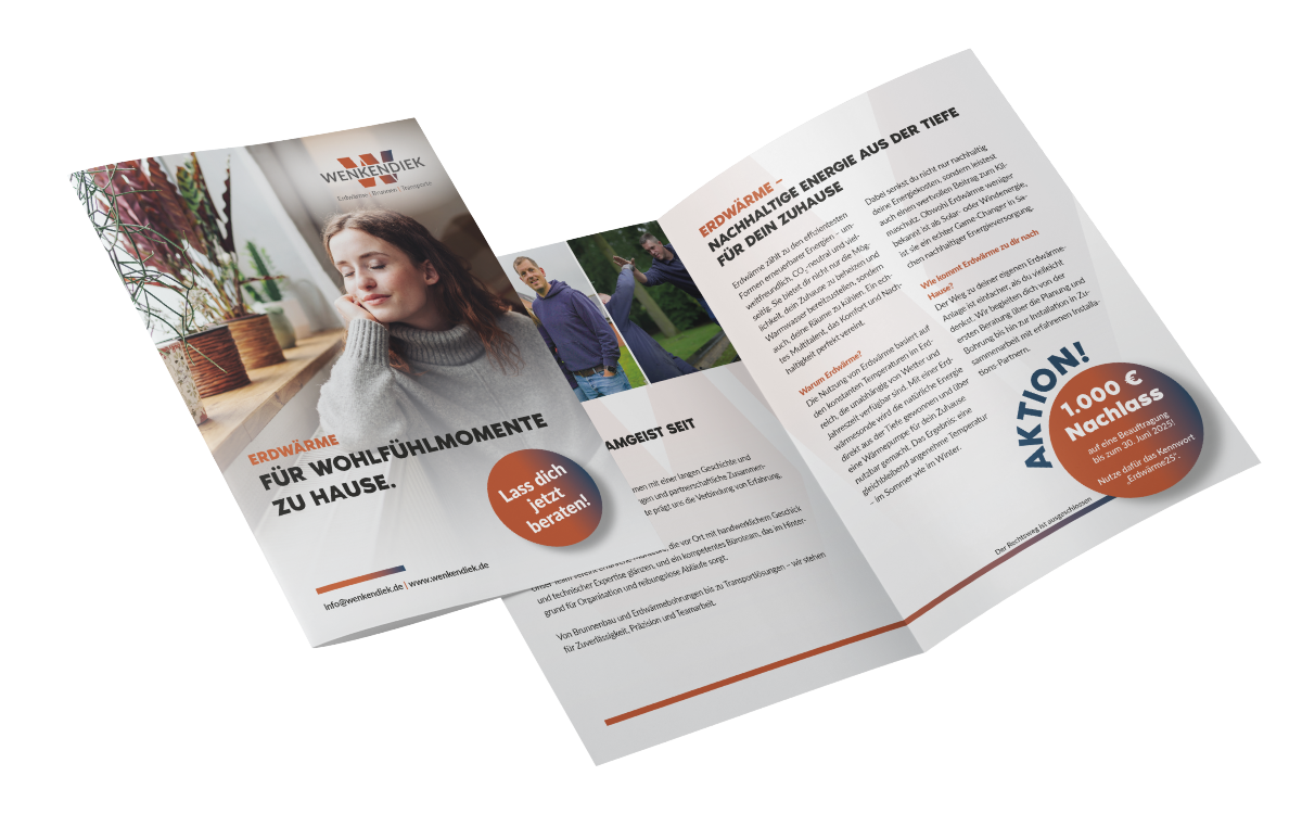 Wir entwickelten ein durchgängiges Erscheinungsbild, das Wenkendiek visuell modernisiert und gleichzeitig die fachliche Kompetenz unterstreicht. Wir starteten mit einem Workshop, um die Kernbotschaften herauszuarbeiten und die Themen Erdwärme, Brunnenbau und Transporte verständlich zu platzieren.